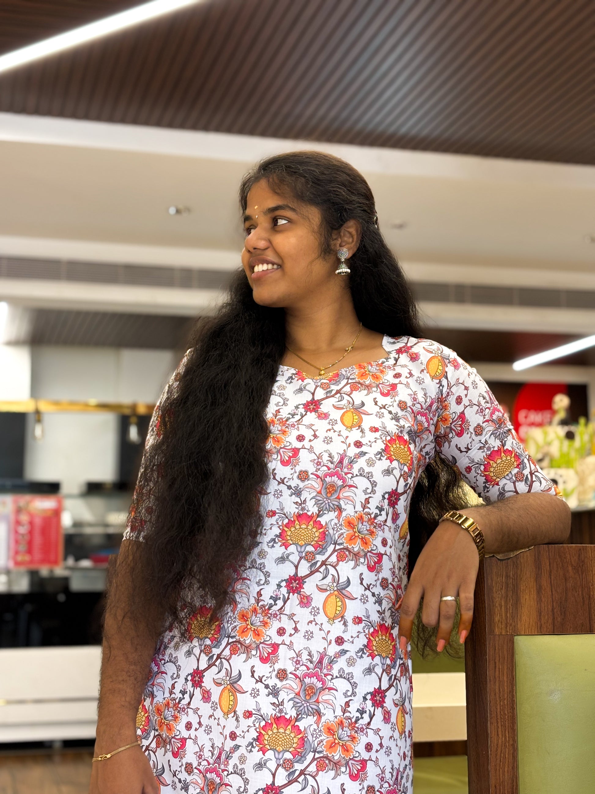 Step into timeless charm with the Elegant Floral Kurti, crafted in soft, breathable pure cotton for all-day comfort. The graceful floral print and elbow-length sleeves make it perfect for casual outings, office wear, or festive moments. A wardrobe essential for those who love effortless style and comfort. ✨