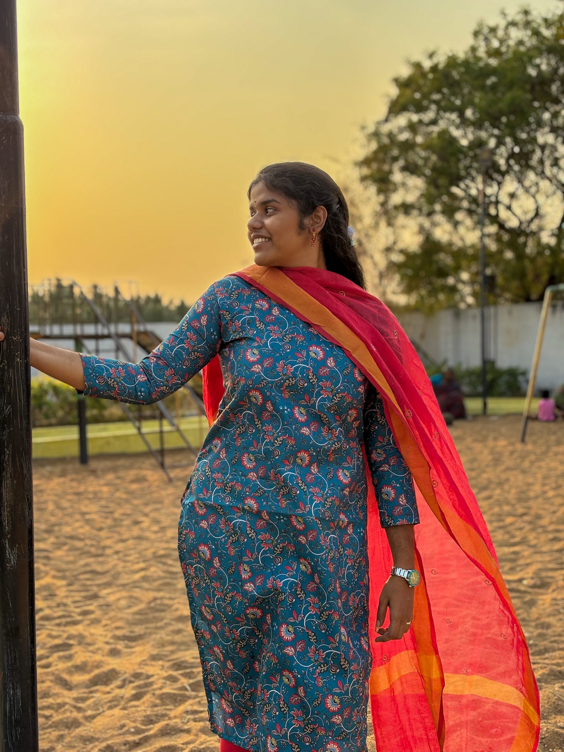 Bring home timeless beauty with this Elegant Blue Floral Kurti, crafted from 100% pure cotton for all-day comfort. Featuring a vibrant floral print on a calming blue base, this piece blends charm and functionality — ideal for casual outings, office wear, or peaceful evening strolls. A perfect addition to your everyday wardrobe. ✨