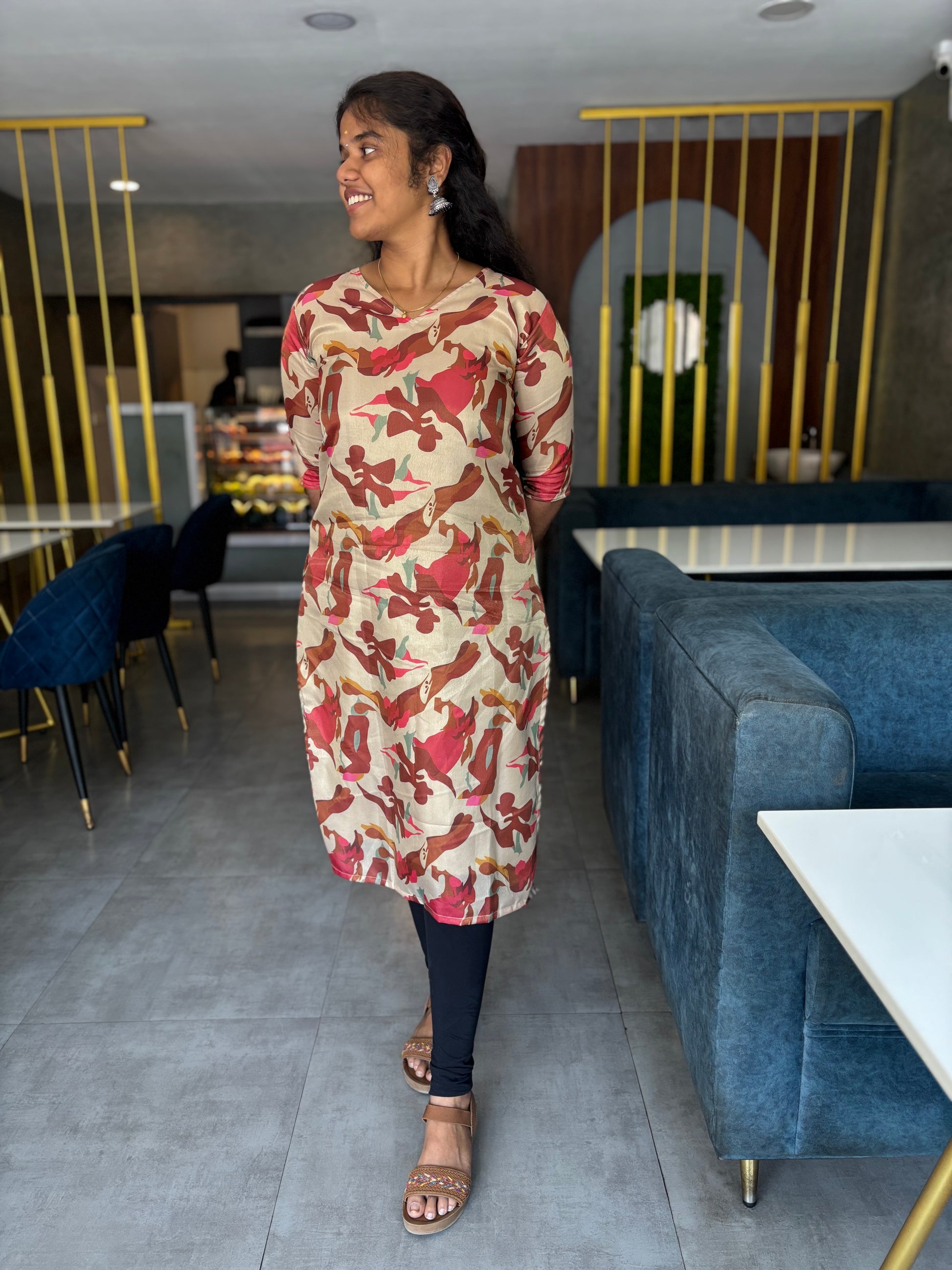 Turn heads with the effortless charm of the Beige-Red Shimmer Silk Kurti, perfect for festive gatherings, lunch dates, or evening celebrations. The rich abstract red and brown print stands out beautifully against a subtle beige shimmer base, offering a touch of modern elegance. Crafted with shimmer silk and lined with soft crepe, it promises both style and comfort in every step. ✨