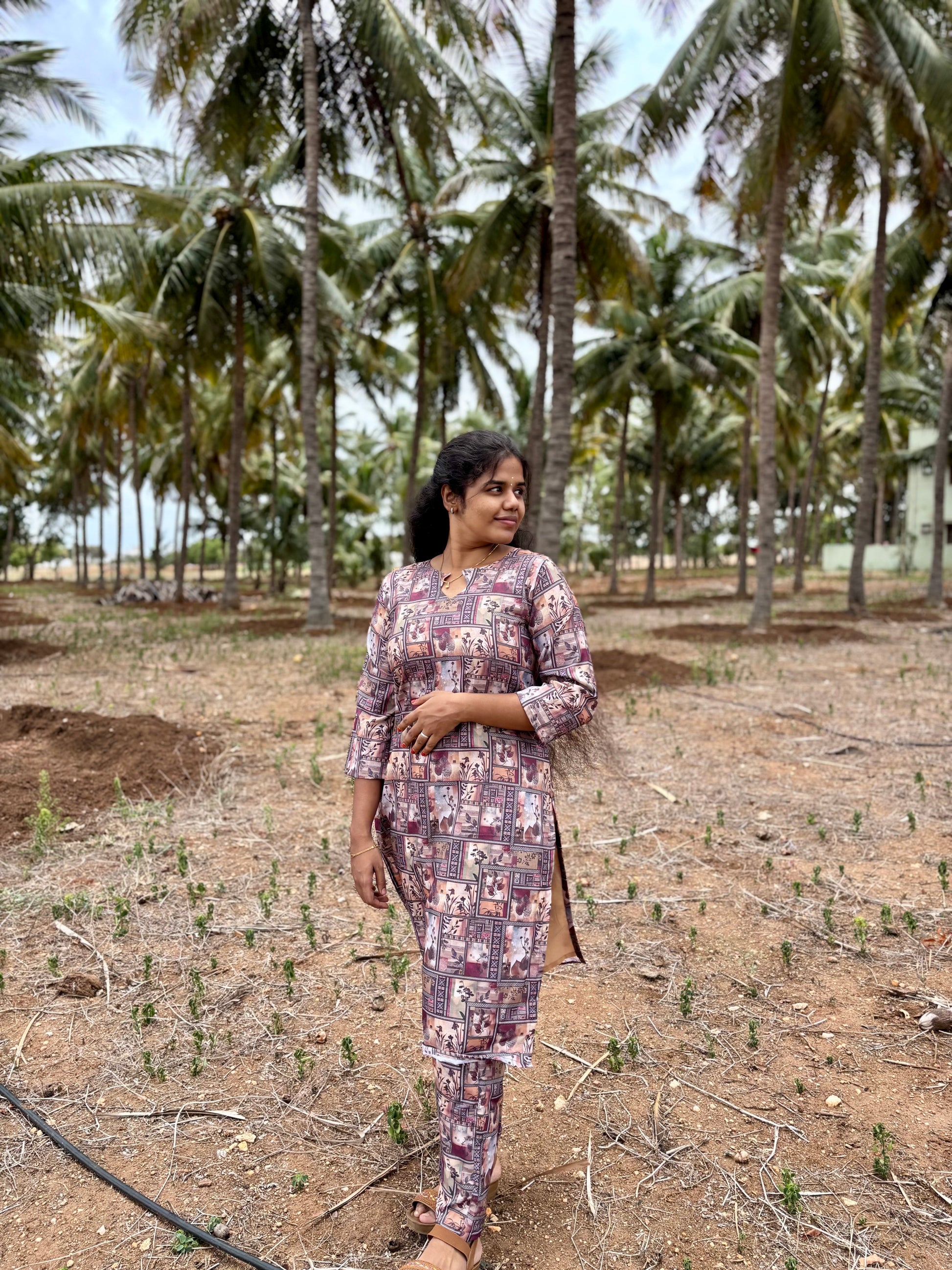 Step into effortless style with this chic pure cotton co-ord set, designed with an artistic block-style print that blends modern charm with timeless comfort ๐ฟ. The kurti features a straight cut with side slits and 3/4th sleeves, paired with matching bottoms for a coordinated, breezy look. Ideal for casual outings, office wear, or day-long comfort.